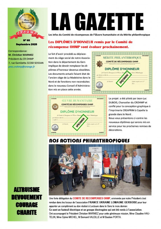• En inscrivant votre e-mail, vous recevrez gratuitement les bulletins d'information de COMITE DE RECOMPENSES