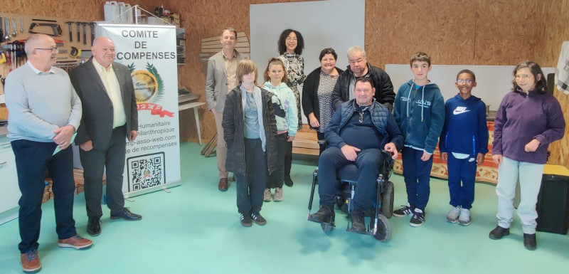 Remise d'une aide financière attribuée à l'association des sentiers de Villeneuve par le comité de récompense de l'œuvre humanitaire et du mérite philanthropique dans le cadre du projet de relation avec les animaux de la ferme. En presence du President Christian WANIEZ ,du trésorier Bernard VALEILLE ,la secretaire Nadia BENNOUR du Comité de Récompenses