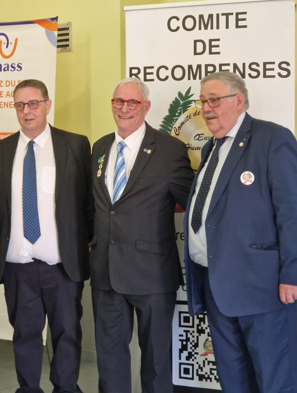 À la demande du Président Cyril Périgault de l’UNASS Centre (45), le Vice-Président Georges Lampin du Comité de Récompenses a remis à Monsieur Erick Ladenise, Président de l’UNASS Indre (36), ami et fidèle partenaire de l’association, la Grande Médaille d’Or de l’Œuvre Humanitaire.