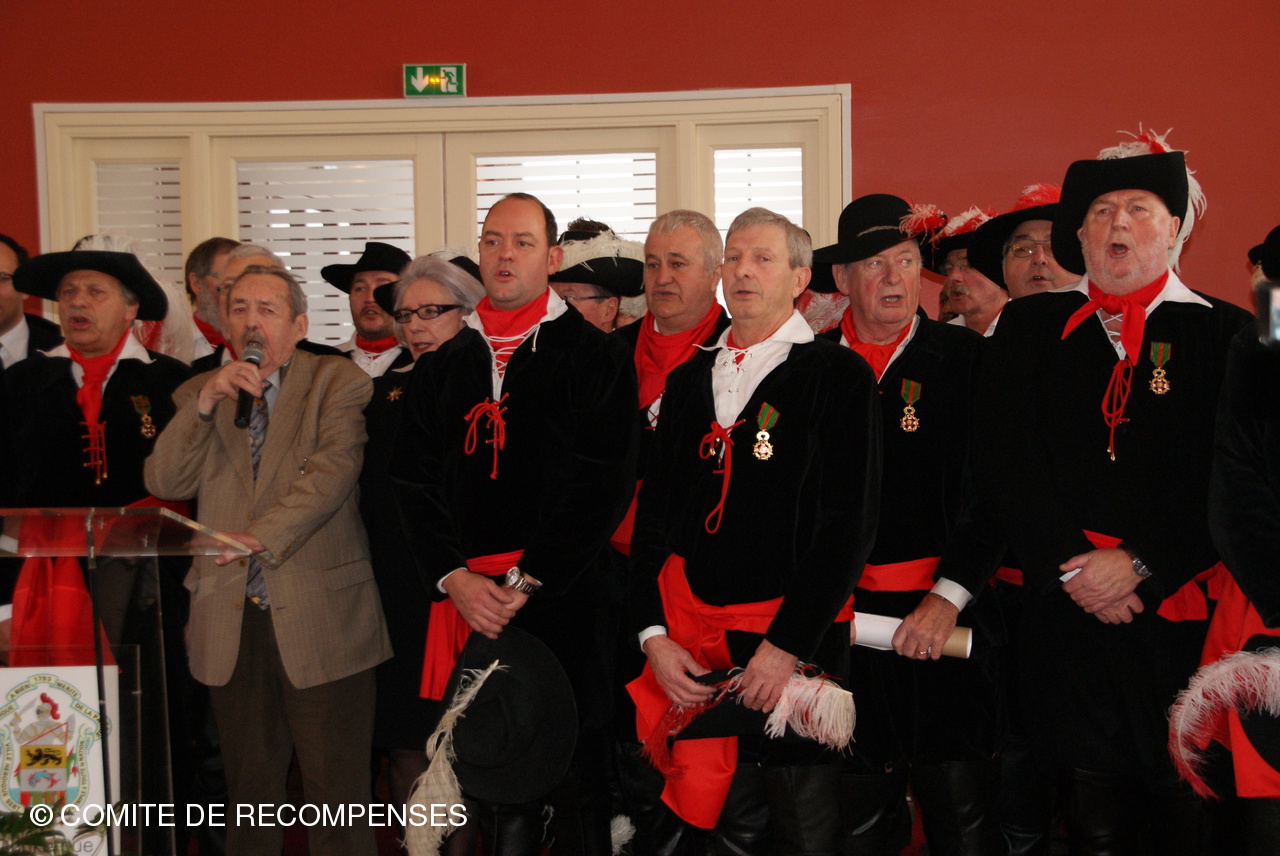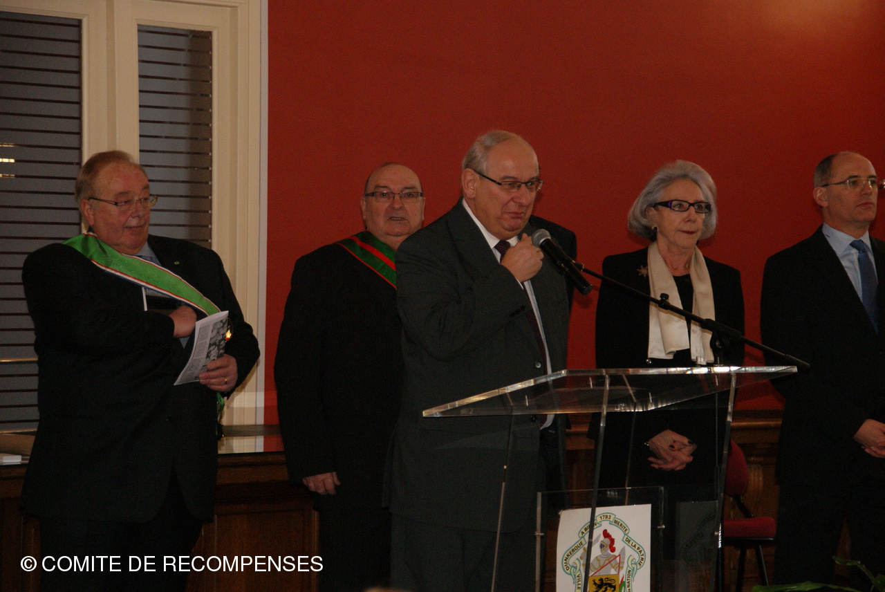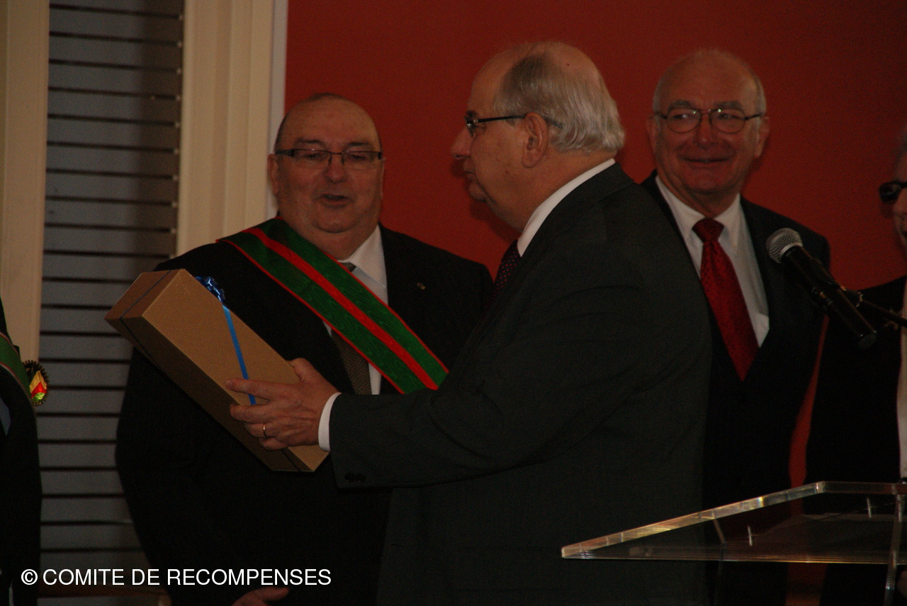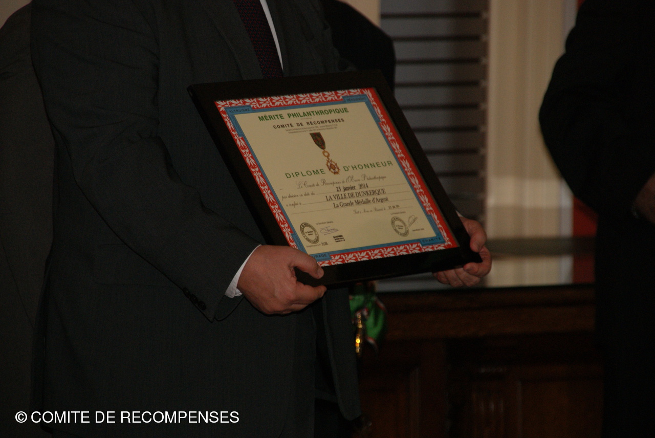 Remise par le Comité de Récompenses d'un Diplôme d'Honneur à la Ville de DUNKERQUE. Le Président J.M.LISSE accompagné de Mrs B. THOMAS,F. DERONNE, M. CLAUS, R. DEZITTER et C. DUMINY administrateurs et leurs épouses ont remis au Sénateur-Maire de DUNKERQUE le Diplôme d'Honneur du Comité.