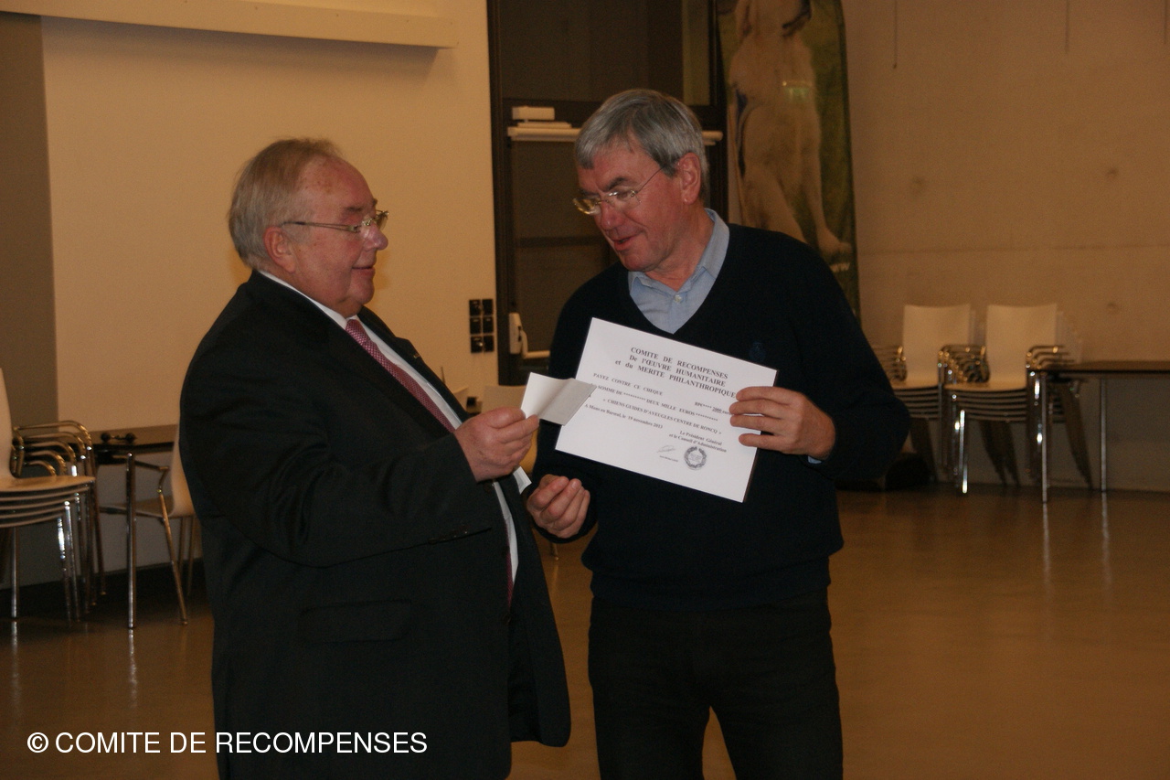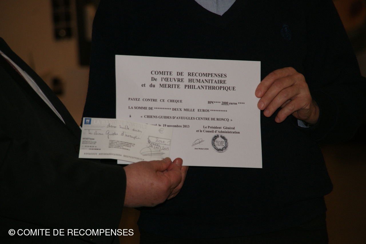 Le Président J.M. LISSE remet un don du comité a l'association Centre Paul CORTEVILLE en présence de Mrs B. THOMAS et C.DUMINY Administrateurs